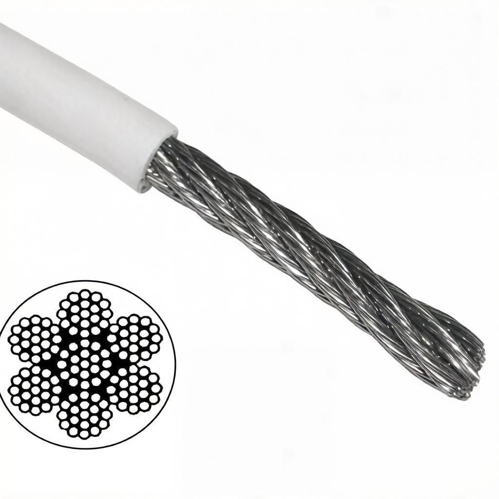 1.5mm(1/16″) 7×7 7×19 Galvanized PVC Coated Stainless Steel Wire Rope for Small Lifting, Blinds, Model Making & Precision Components