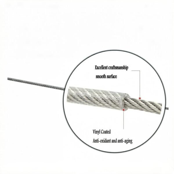 Product name 5.0mm(3/16″) 7×7 Steel Core PVC Coated Wire Rope High Strength Durable Cable for Industrial Hardware & Outdoor Use