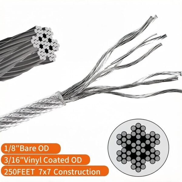 Be the first to review “Heavy Duty 7×7 Steel PVC 5.0mm(3/16″) Coated Wire Rope Strong Flexible Cable for Railing, Clothesline & Garage”